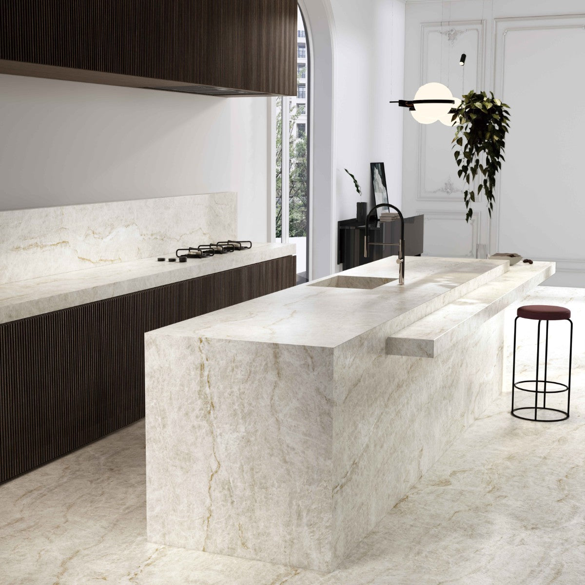 With its continuous pattern, sintered stones create a seamless and elegant look across your countertops, walls, floors, facades, bathrooms, kitchens, and workspaces.